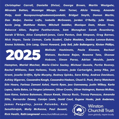 Churchill Fellowships are awarded to Australians from all walks of life—teachers, artists, nurses, scientists, and volunteers—who are driven by a desire to make change.